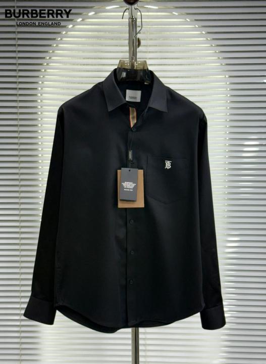 Burberr y Black Premium Embroidered Logo Shirt With custom Branded Button Tagging And Brand Packing 3749