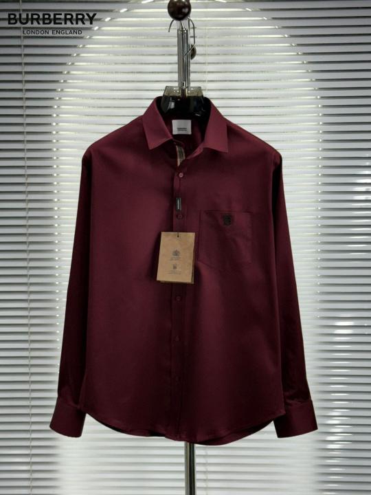 Burberr y Maroon Premium Embroidered Logo Shirt With custom Branded Button Tagging And Brand Packing 3750