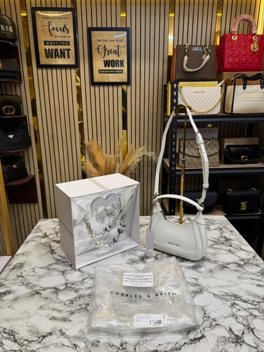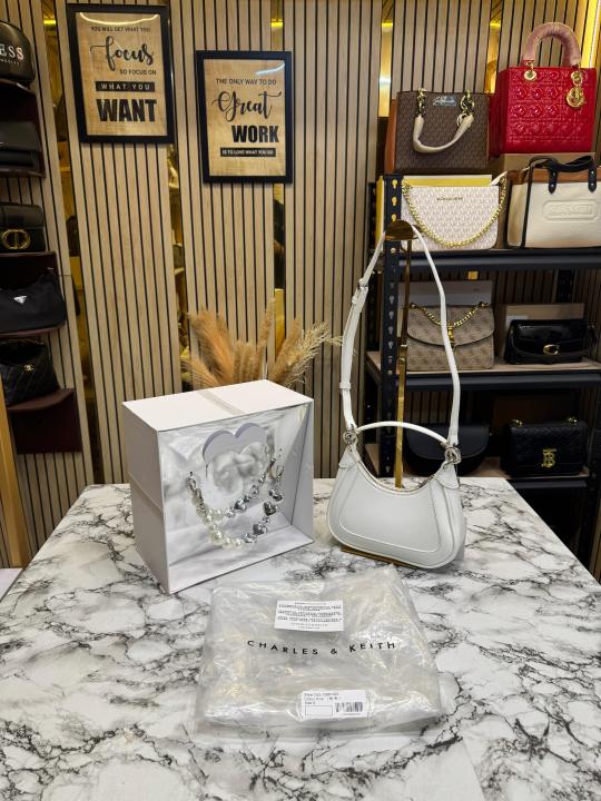 Charle_s & Keith Gift Set In White Faux Leather Hobo Bag