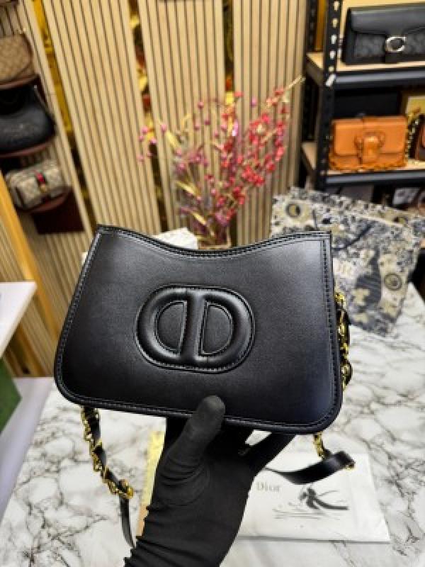 CHRISTIAN DIO_R SIGNATURE HOBO SHOULDER BAG WITH OG BOX AND DUST BAG INCLUDING CARRY BAG (FULL BLACK)