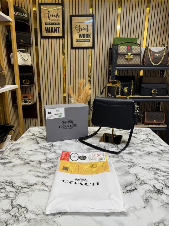 Coac_h tabby glossy crossbody bag with box and dust bag (black)