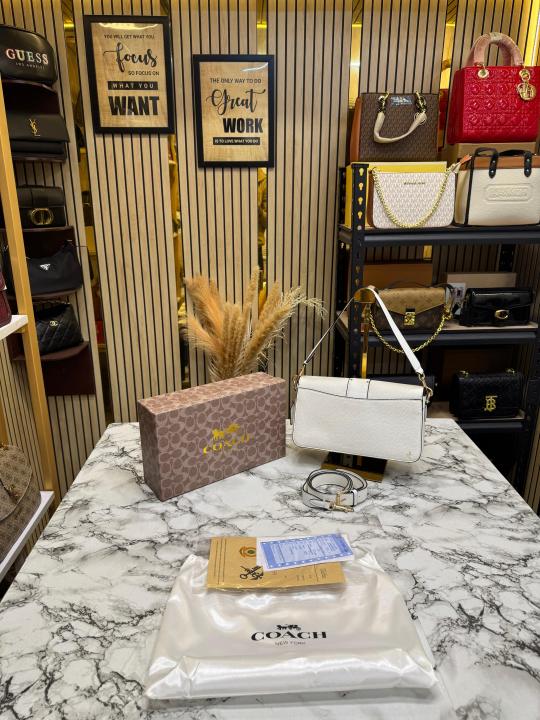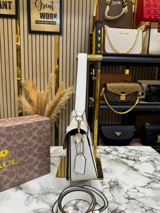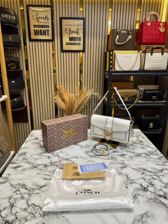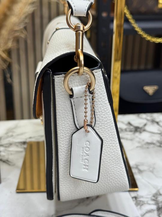 COAC_H GEORGIE SHOULDER BAG IN COLORBLOCK SIGNATURE CANVAS WITH RIVETS & OG BOX AND DUST BAG INCLUDING CARRY BAG [ FULL WHITE]