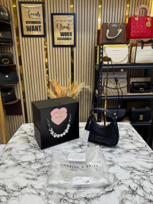 Charle_s & Keith Gift Set In Black Faux Leather Hobo Bag
