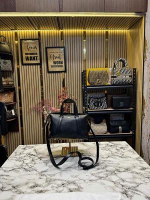 FEND_I LEATHER BOWLING HANDBAG WITH SLING PREMIUM QUALITY WITH DUST BAG (BLACK)