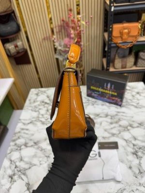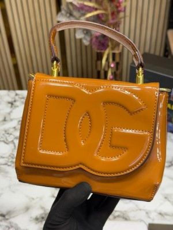 Dolce_&_Gabbana_lacquered_bag_mini_DG Logo_(Brown)