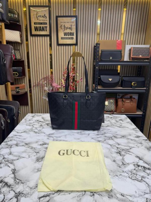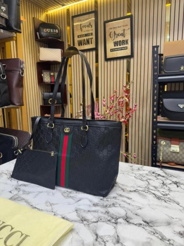 Gucc_i GG Emblem Embossed Large Tote Bag With Double Og Box And Dust Bag (Black)