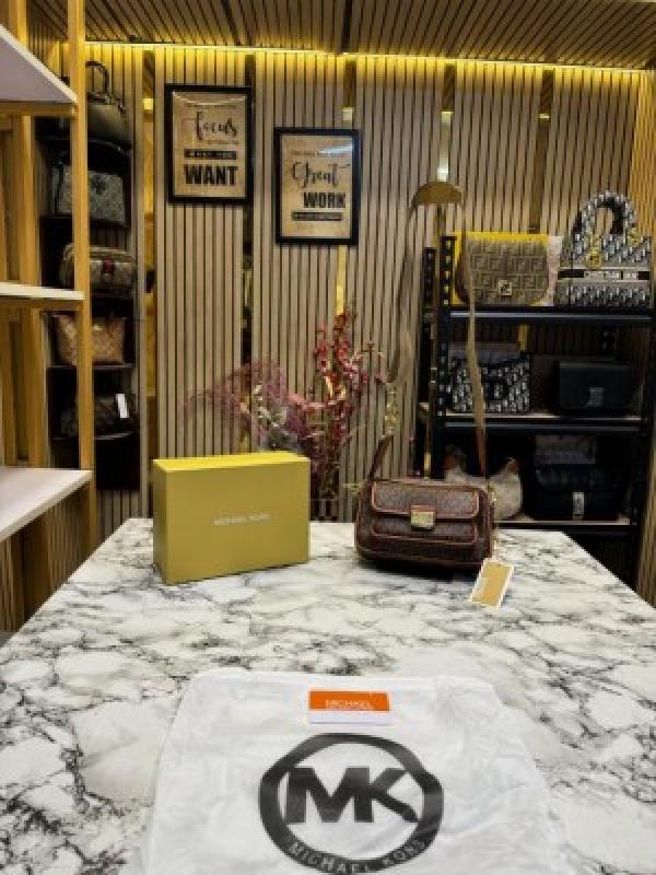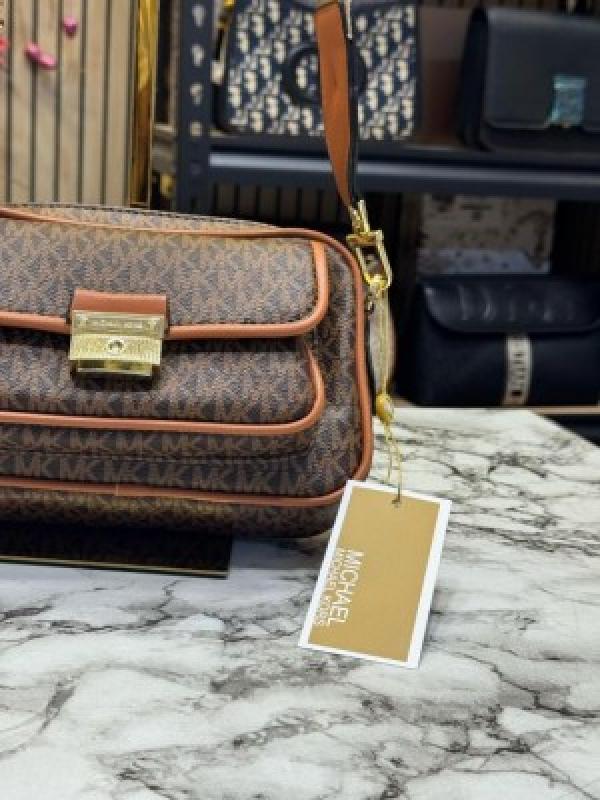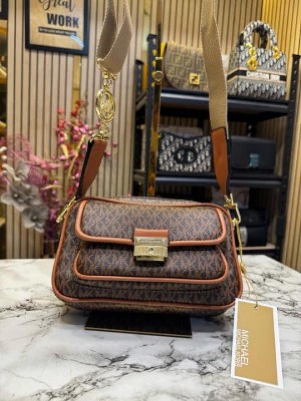 michael_kors bradshaw brown monogram camera bag with og box and dust bag (V-60041)