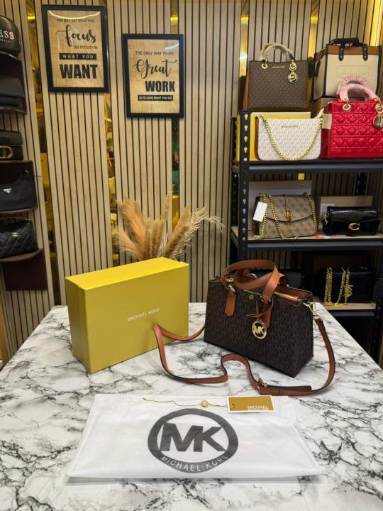 Michael_Kors Emma Satchel Bag With Box And Dust Bag (Brown-102977)