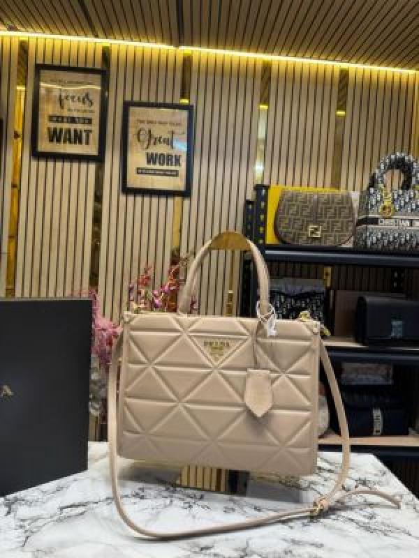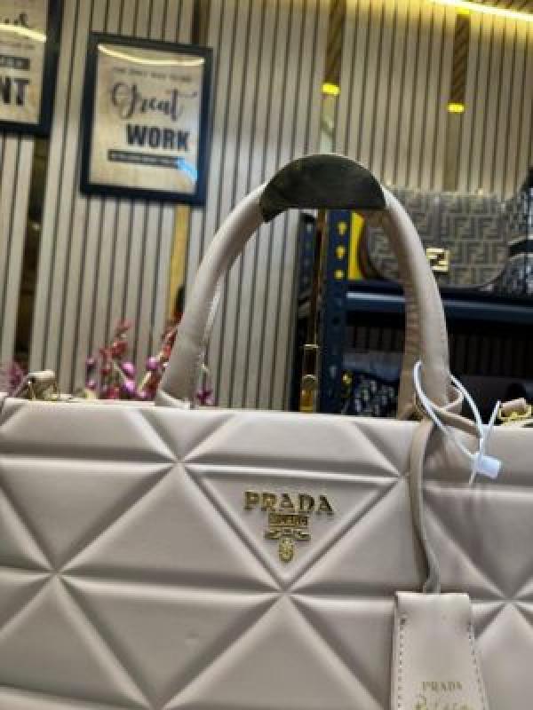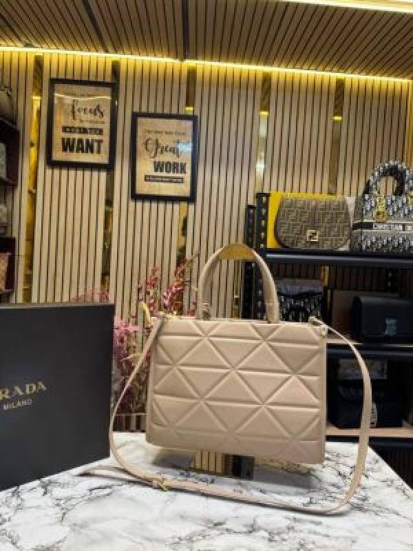 Prad_a Symbol Tote Bag With Box And Dust Bag (Khaki)