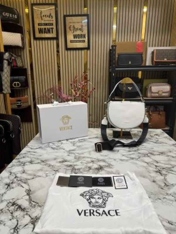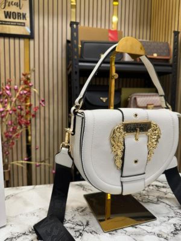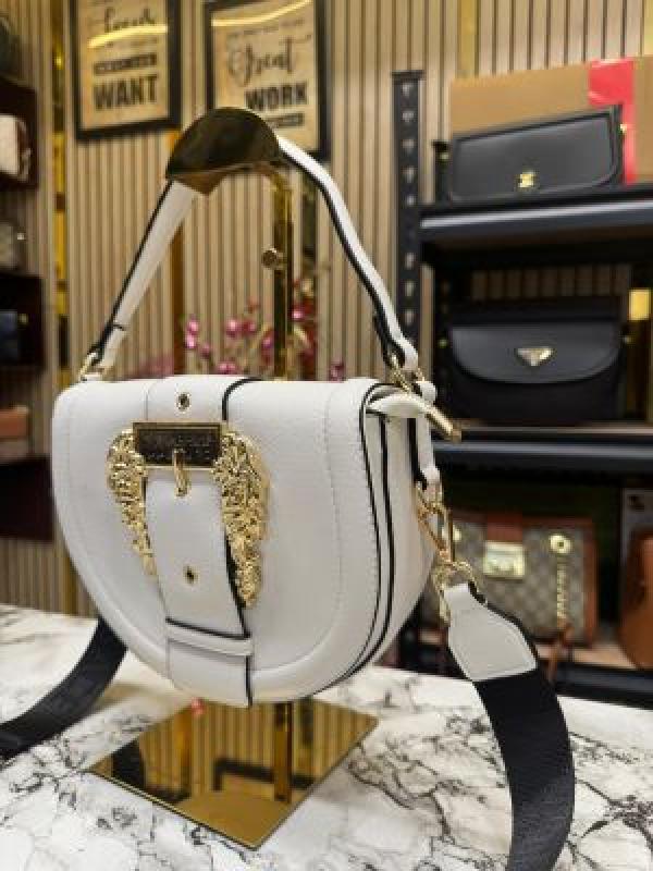 Versace leather shoulder bag with gold accents include magnetic closure bag (white)