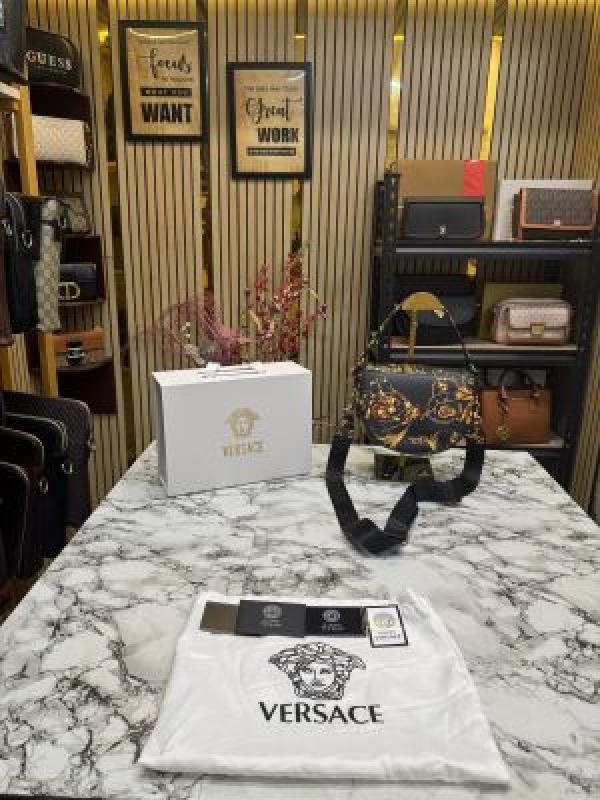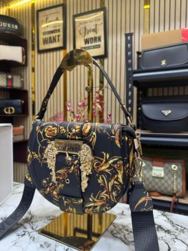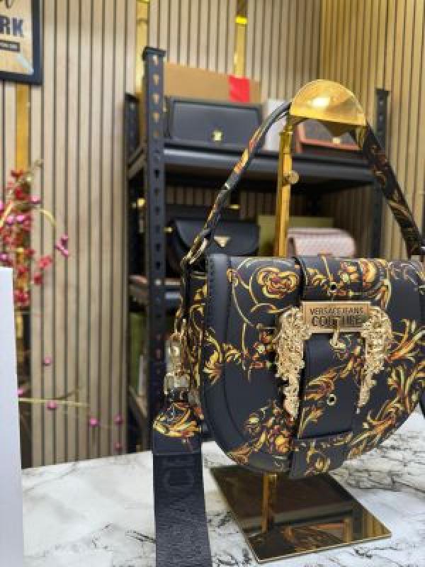 Versace shoulder bag in gold accents with magnetic closure bag (Black and gold)