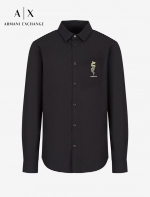 Arman i Exchange Black Premium Shirt With custom Branded Button Tagging with Embroidered Logo Design And Brand Packing sale offer 2492