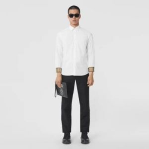 Burberr y White Premium Imported Embroidered Logo Shirt with custom Branded Button Tagging And Brand Packing 3254
